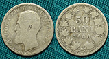 50 бани 1900 год, Ag, 835 пробы 2,5 грамм, Румыния.