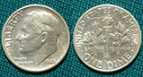 10 центов 1946 год, Ag, 900 пробы 2,5 грамм, США.