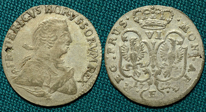 6 грошей 1752 год, S-E, Пруссия, Германия.