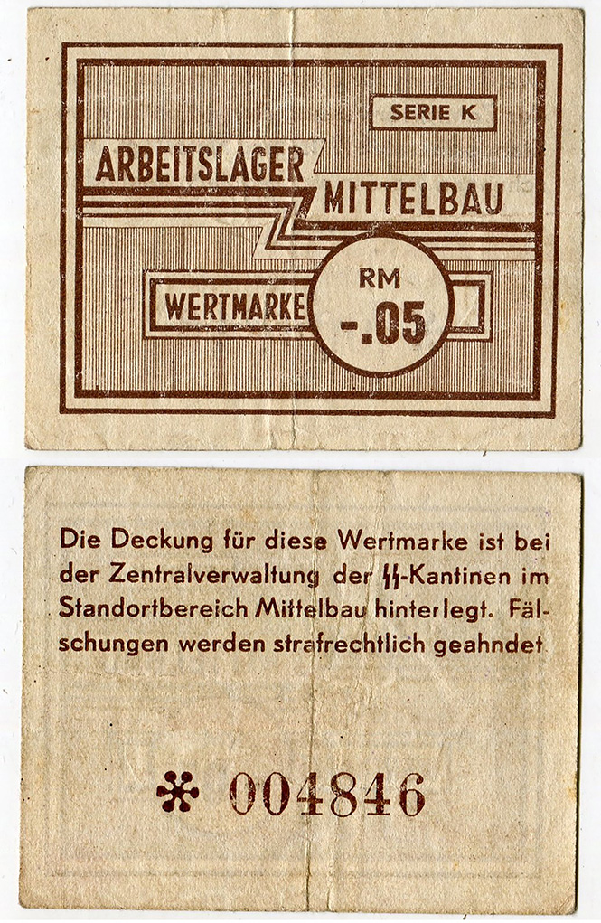5 пфеннигов 1944 год, трудовой лагерь, Миттельбау, Германия.