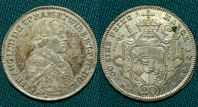 20 крейцеров 1784 год, G-MP, Вюрцбург, Германия.