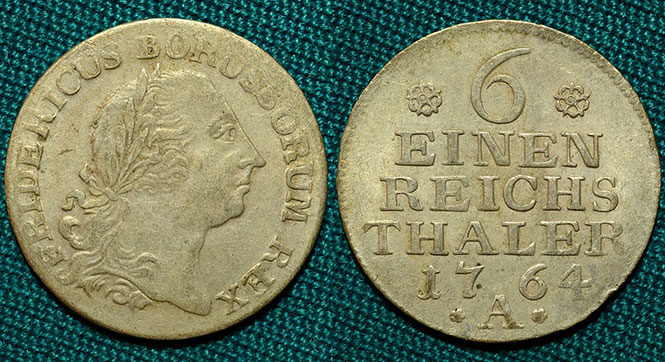 1/6 талера 1764 год, А, Пруссия, Германия.