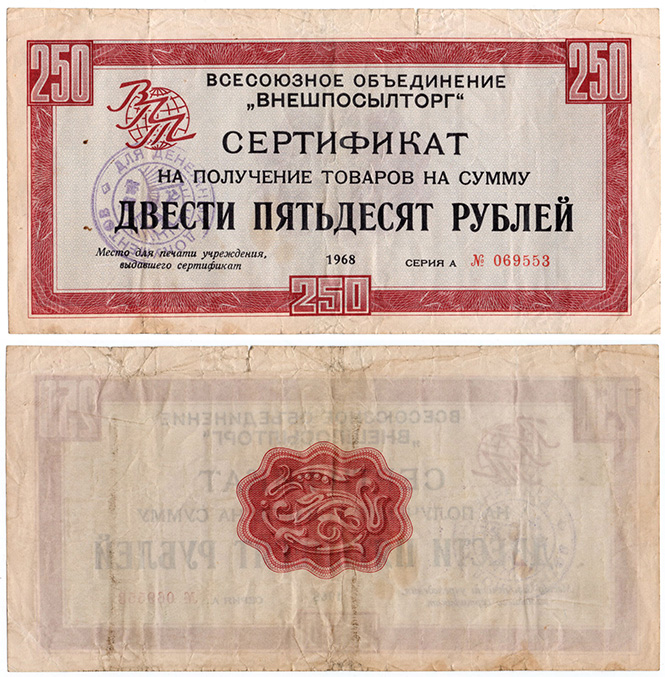 250 рублей 1968 год, Внешпосылторг.