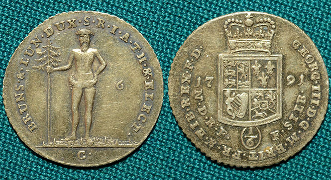 1/6 талера 1791 год, С, BRUNSWICK-LUNEBERG-CALENBERG-HANNOVER, Германия.