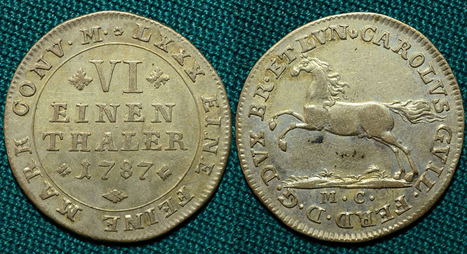 1/6 талера 1787 год, МС, BRUNSWICK-WOLFENBUTTEL, Германия.