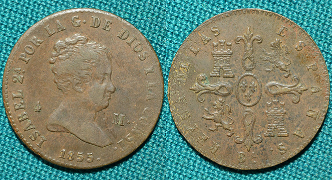 4 мараведи 1855 год, Испания.