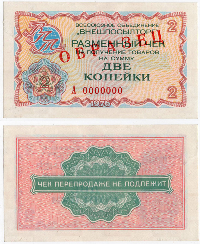 2 копейки 1976 год, Внешпосылторг, Образец.