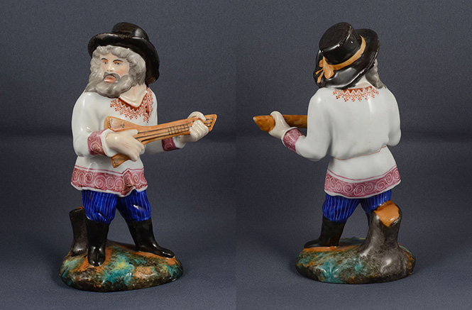 Статуэтка "Балалаечник", фабрика братьев Попихиных, село Речицы, 1850-70х годов.