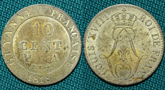 10 сантимов 1818 год, Французская Гвиана.