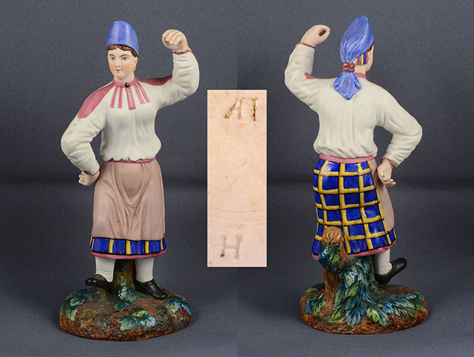 Статуэтка "Танцующая женщина", завод Попова в селе Горбуново, 1870х годов, скол пальца на правой руке.