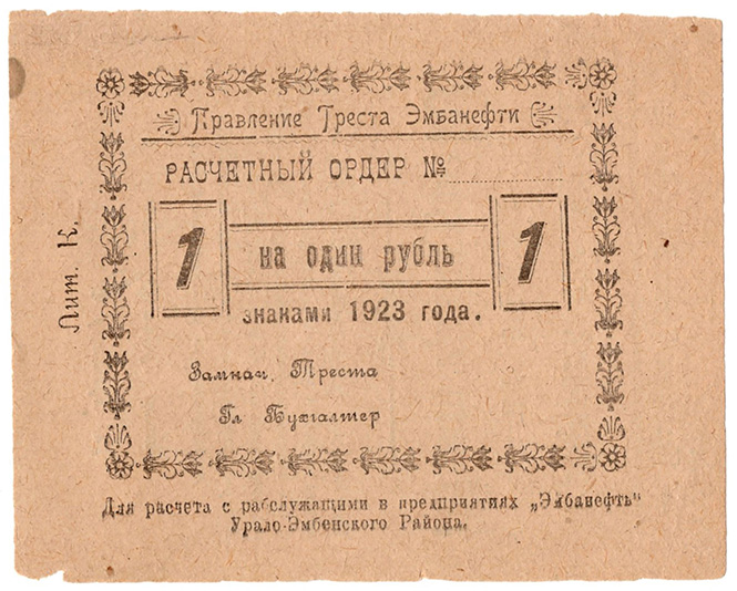 1 рубль 1923 Эмбанефть Гурьев