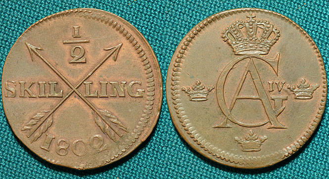 1/2 скилинга 1802 Швеция