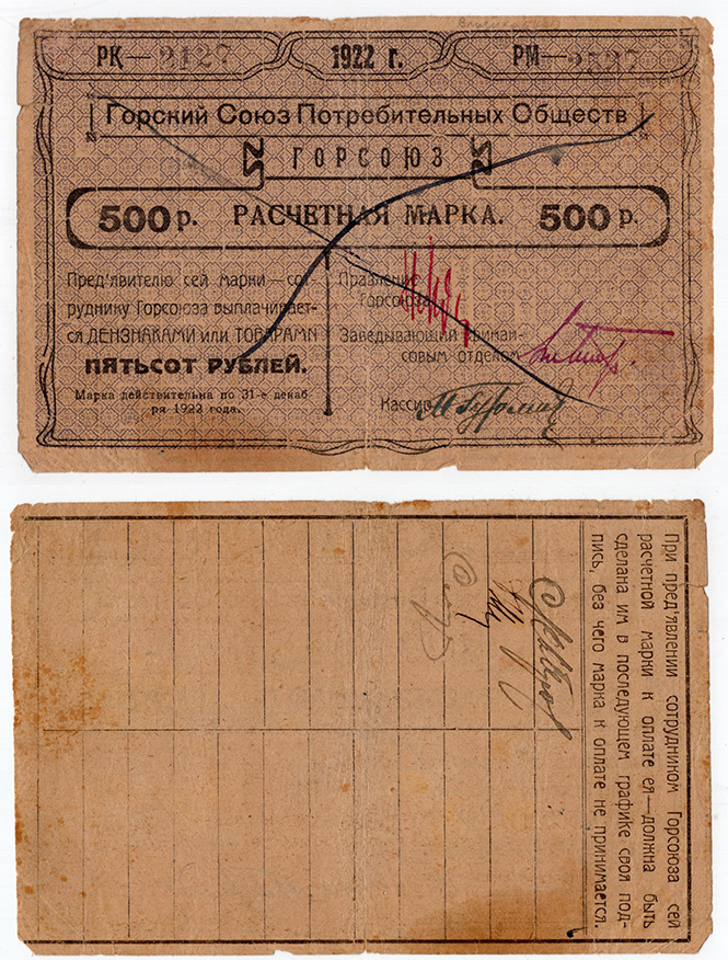 500 рублей 1922 Горсоюз Владикавказ