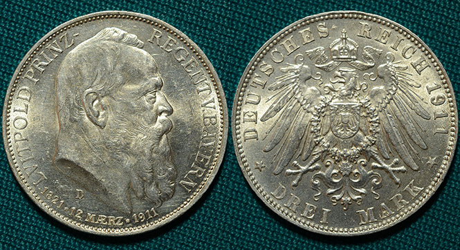3 марки 1911 D Бавария Германия