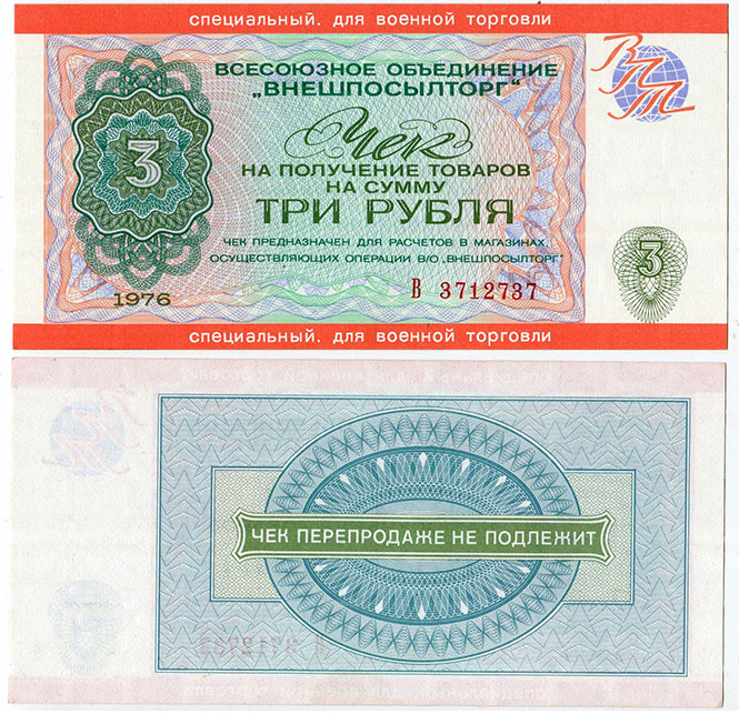 3 рубля 1976 Внешпосылторг Военторг