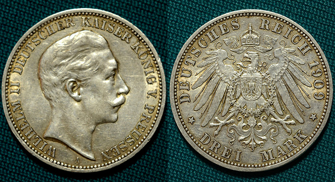3 марки 1909 Пруссия Германия