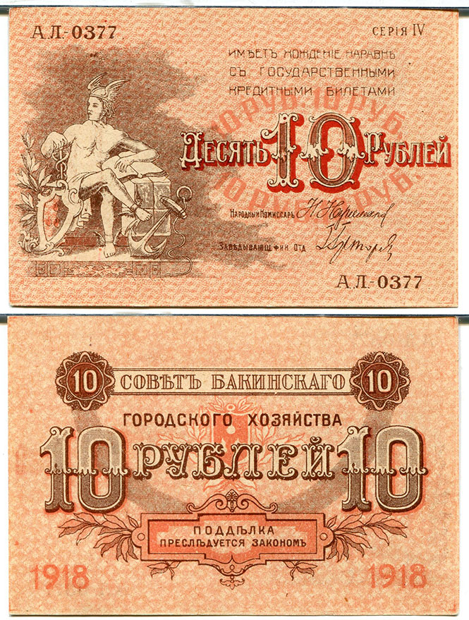 10 рублей 1918 Баку Азербайджан
