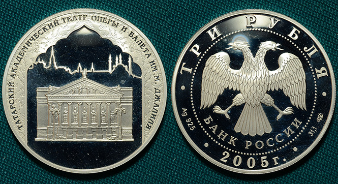 3 рубля 2005 Казань Ag