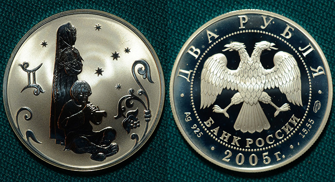 2 рубля 2005 Дева Ag