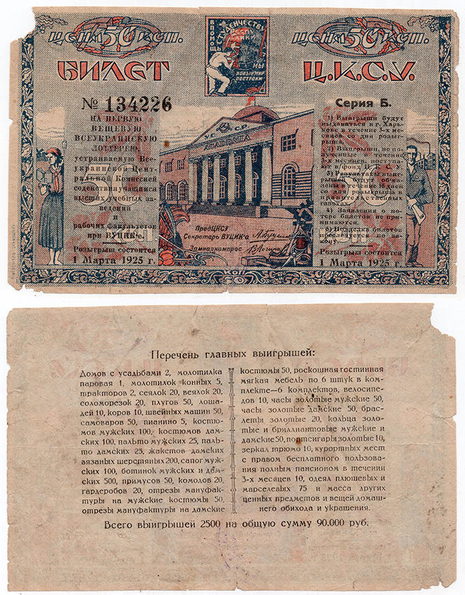 Лотерейный билет 50 копеек 1925