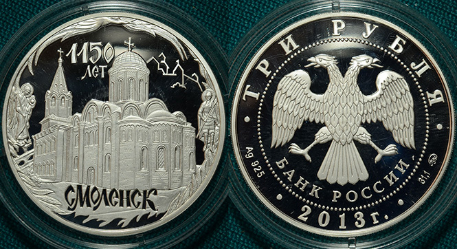 3 рубля 2013 Смоленск Ag