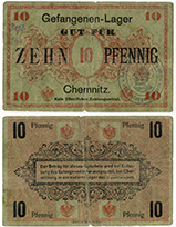 10 пфеннигов 1916 год, лагерь для военнопленных, Хемниц, Германия.