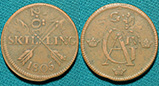 1 скилинг 1805 год, Швеция.