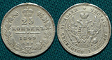 25 копеек 1849 год, Ag, 868 пробы 5,18 грамм, СПБ-ПА, Биткин №297, R1.