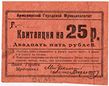 Квитанция на 25 рублей Армавирского городского муниципалитета, 1919 год.