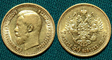 7,5 рублей 1897 год, Au, 900 пробы 6,45 грамм, СПБ-АГ.