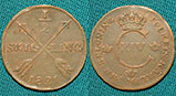 1/2 скилинга 1805 год, Швеция, перечекан из 1 оре "S.M.".