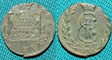 1 копейка 1788 год, Красный МД, сетчатый гурт.