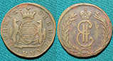 Полушка 1775 год, КМ, Сибирская монета, Биткин №1224, R1.