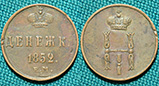 Денежка 1852 год, ЕМ.