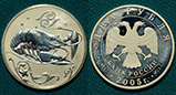 2 рубля 2005 год, ММД, Ag, 925 пробы 15,55 грамм, "Рак".