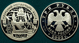 3 рубля 2002 год, Ag, 900 пробы 31,1 грамм, СПМД, "Валдай".