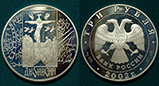 3 рубля 2002 год, Ag, 900 пробы 31,1 грамм, СПМД, "Дионисий".