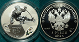3 рубля 2014 год, Ag, 925 пробы 31,1 грамм, СПМД, Сочи.