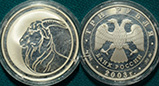 3 рубля 2003 год, Ag, 900 пробы 31,1 грамм, ММД, "Год козы".