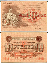 10 рублей 1918 год, Баку, Азербайджан.