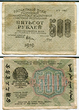 Расчетный знак в 500 рублей, 1919 год, В/З "500".